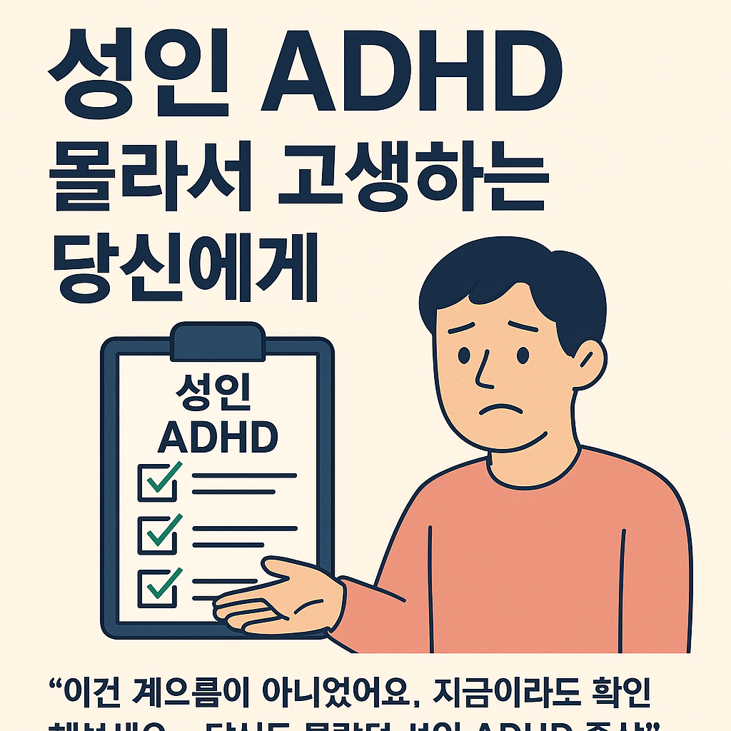 많은 성인들이 자신의 집중력 문제나 시간 관리 실패, 감정 기복을 단순히 "내가 부족한 탓"이라고 여깁니다. 하지만 이는 단순한 나약함이 아닌, **성인 ADHD(주의력결핍 과잉행동장애)**일 수 있습니다.
