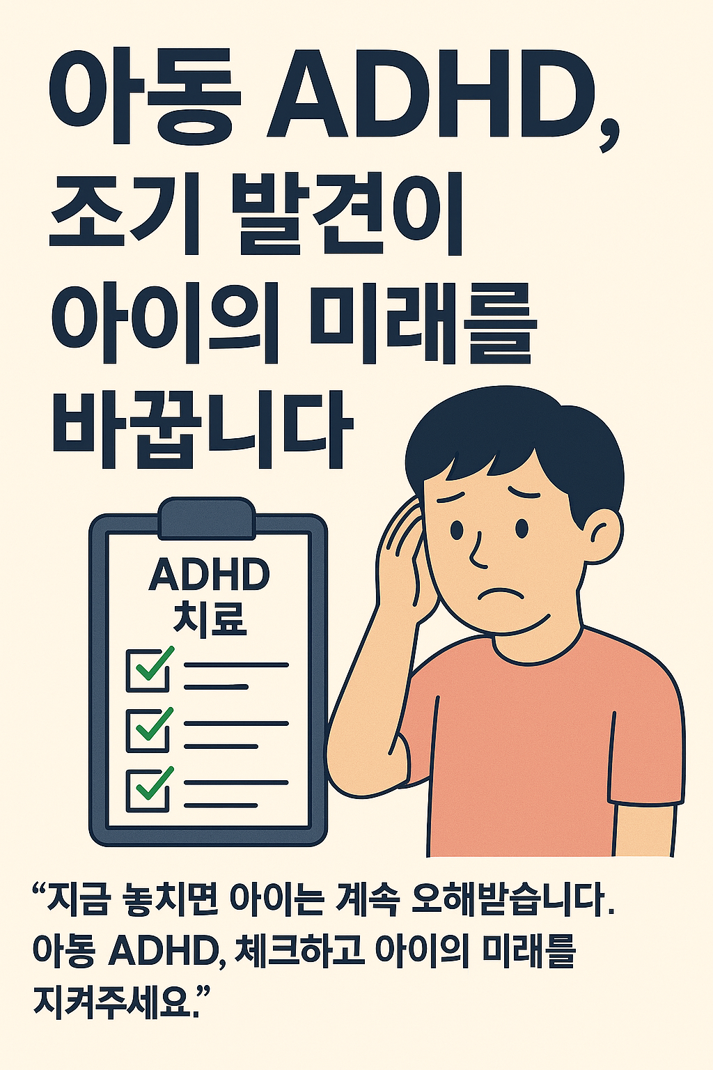 "지금 놓치면 아이는 계속 오해받습니다. 아동 ADHD, 체크하고 아이의 미래를 지켜주세요."